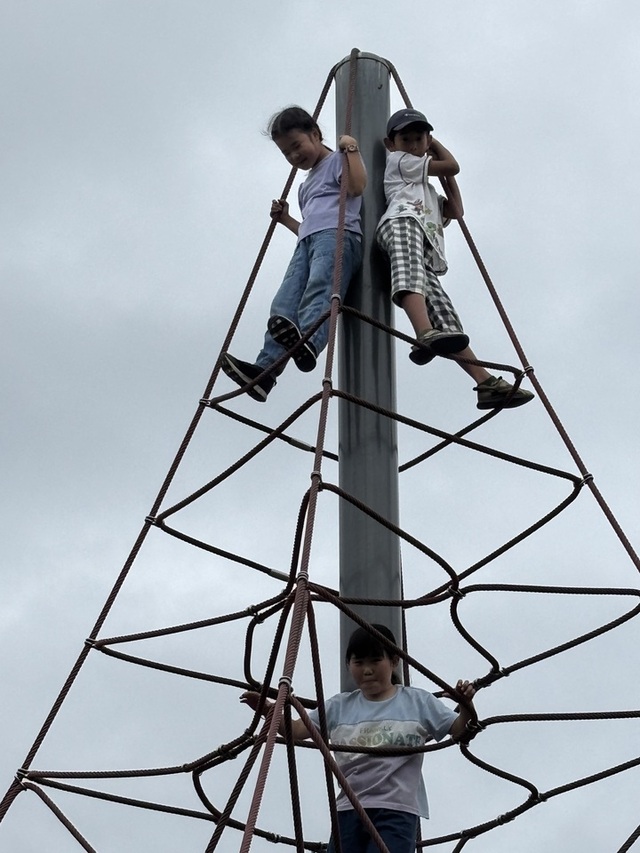 気温が低く、小戸公園では大きなアスレチック施設や広いグラウンドがあり、